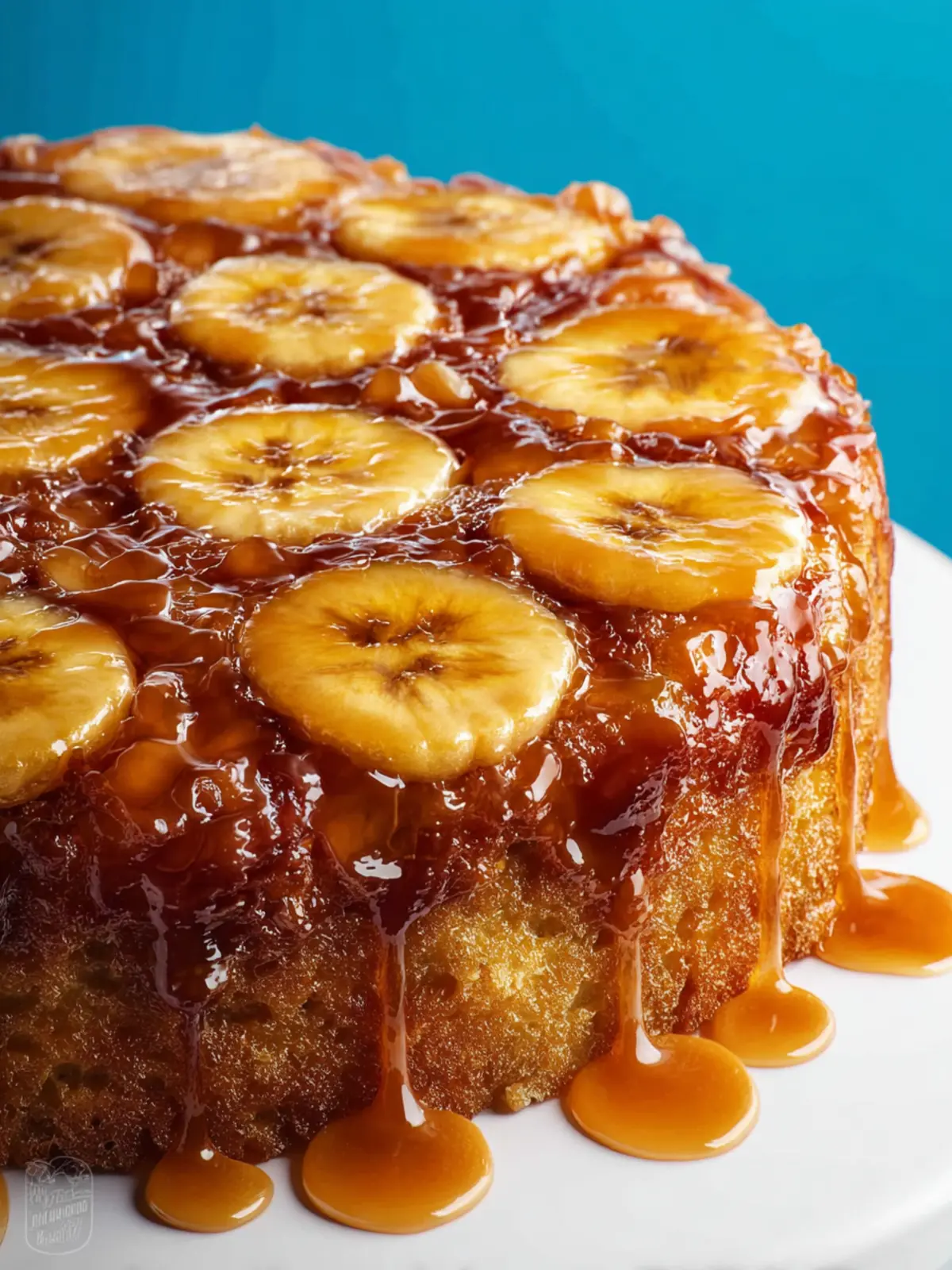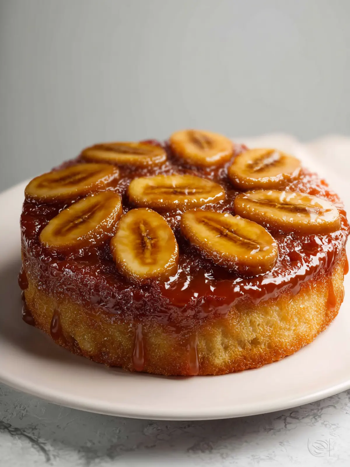 This delicious banana upside-down cake is a delightful dessert that features a caramelized banana topping.