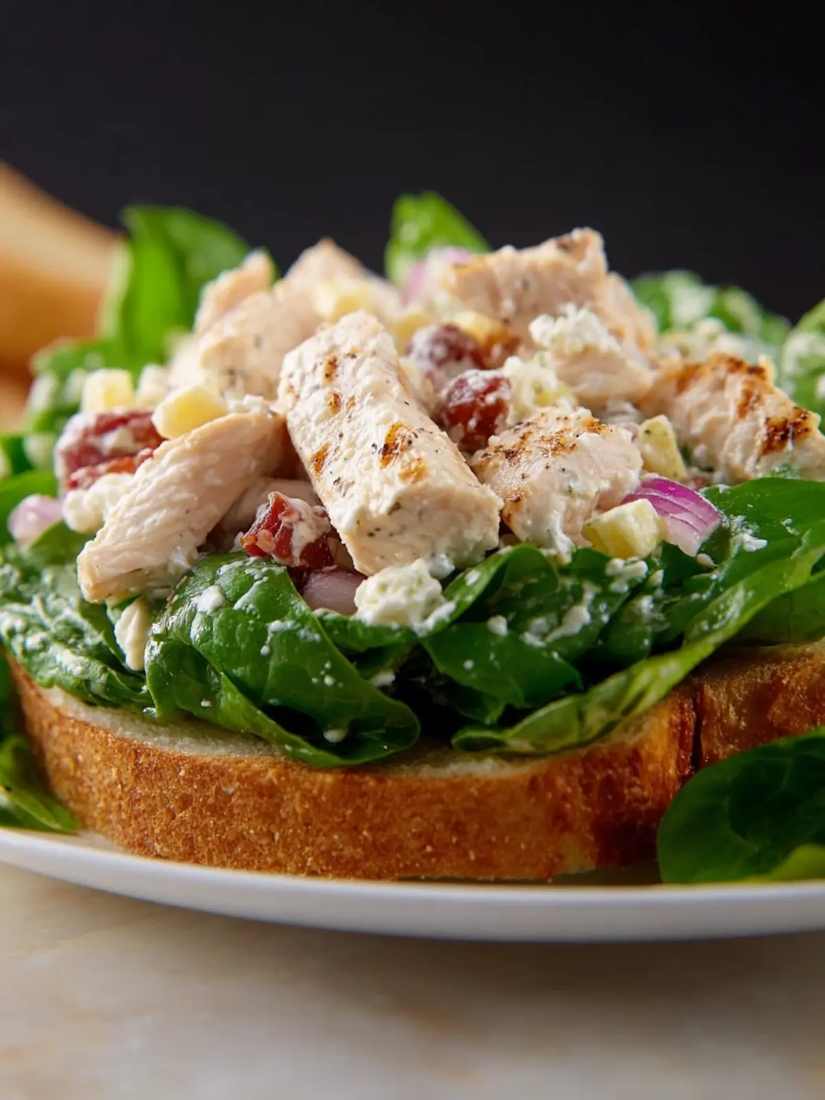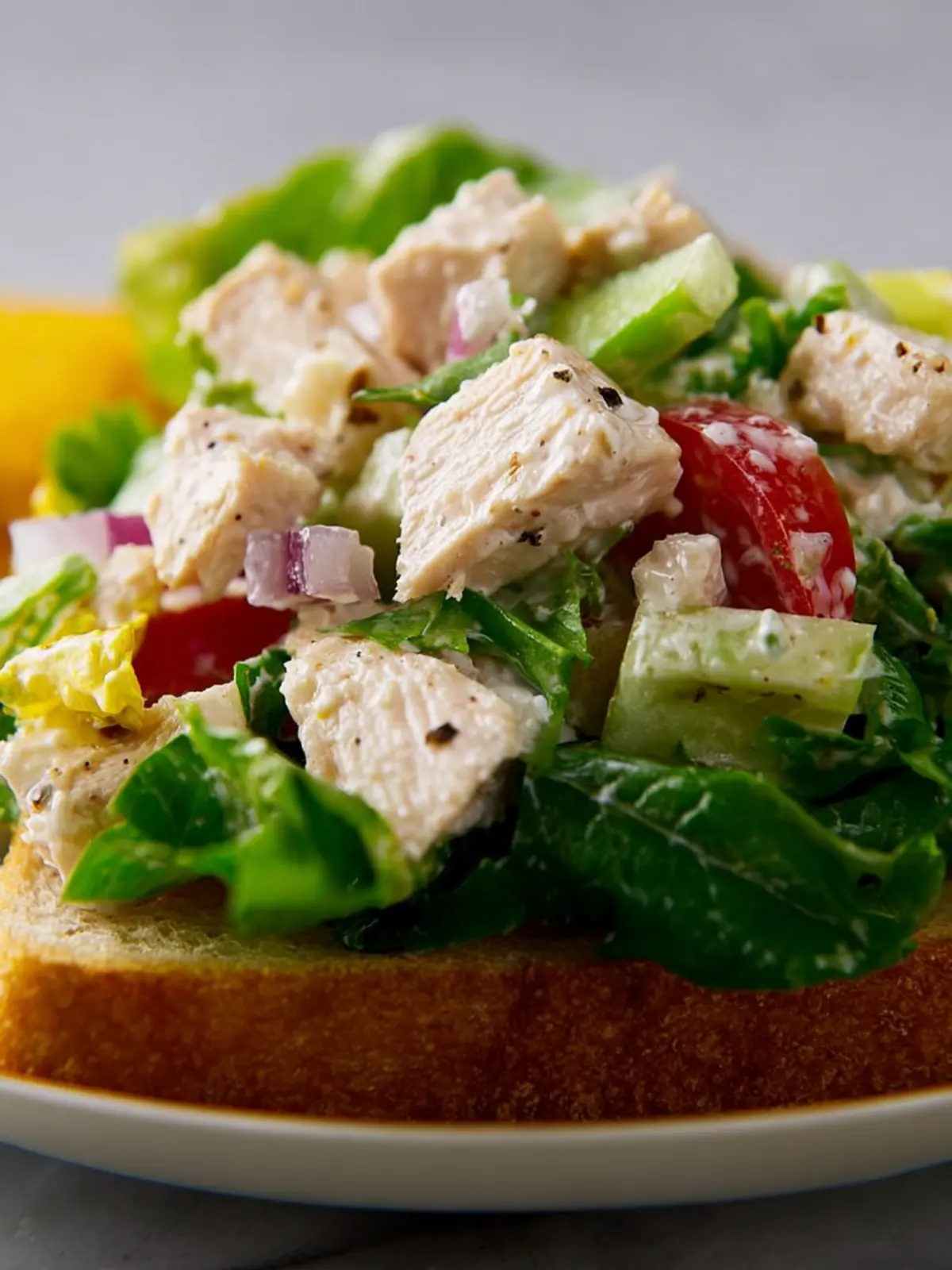 Begin by placing your chicken salad on a mix of vibrant greens. A bed of crisp romaine, arugula, or spinach not only enhances the flavor but also adds a nutritious touch. You can even sprinkle some cherry tomatoes and avocado to elevate your presentation.
