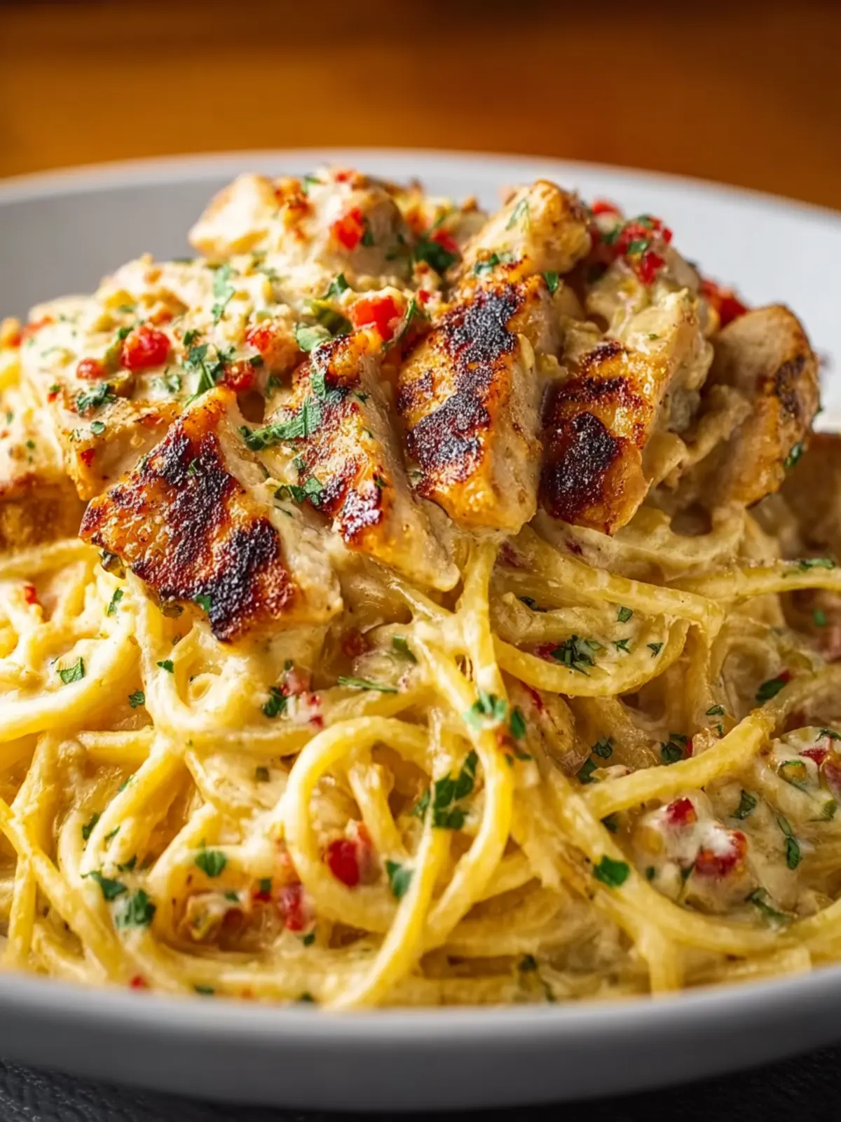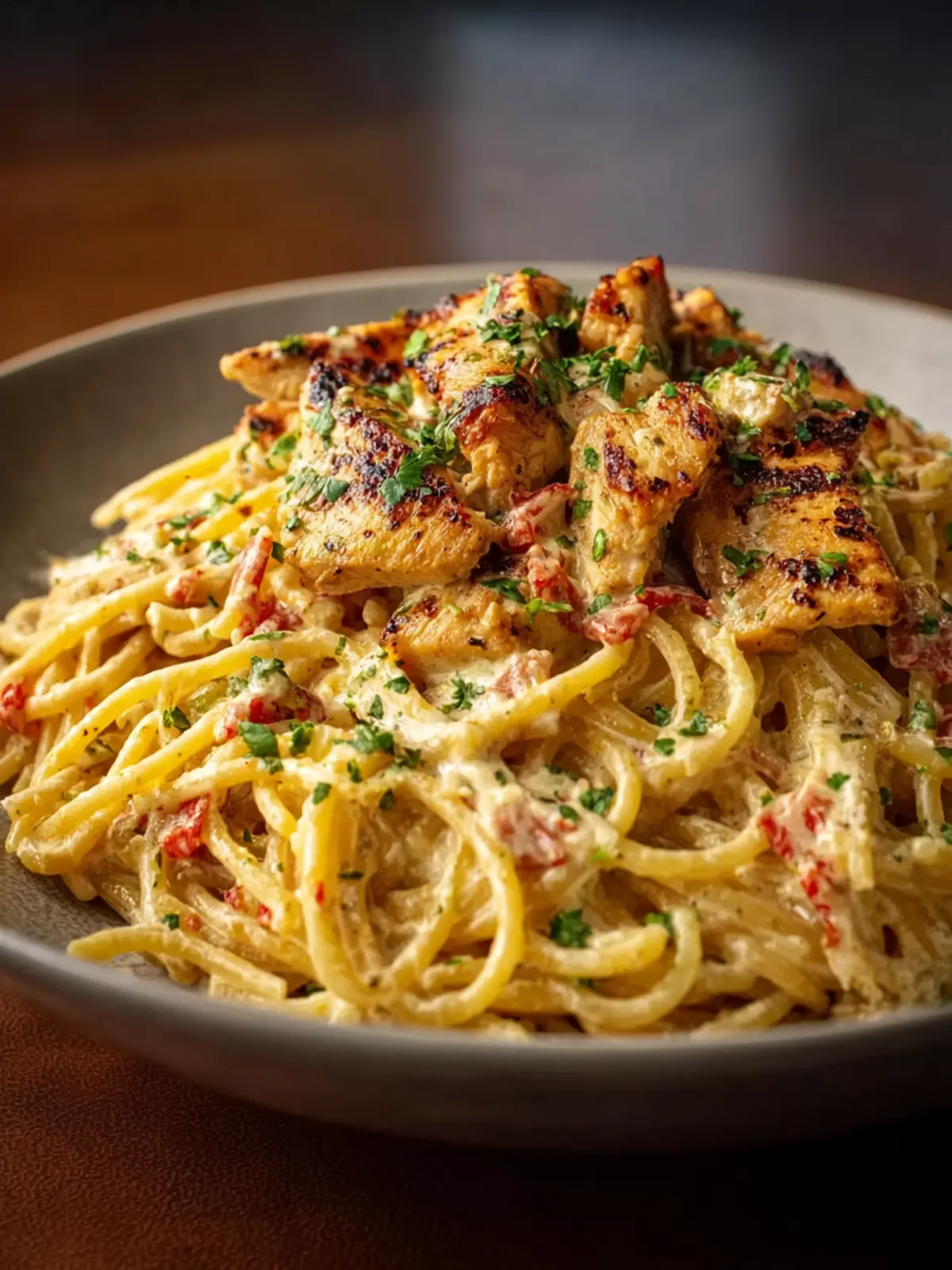 - Finish with chopped parsley and an extra sprinkle of Parmesan. Serve hot and enjoy every creamy, spicy bite of your homemade Creamy Cajun Chicken Spaghetti.