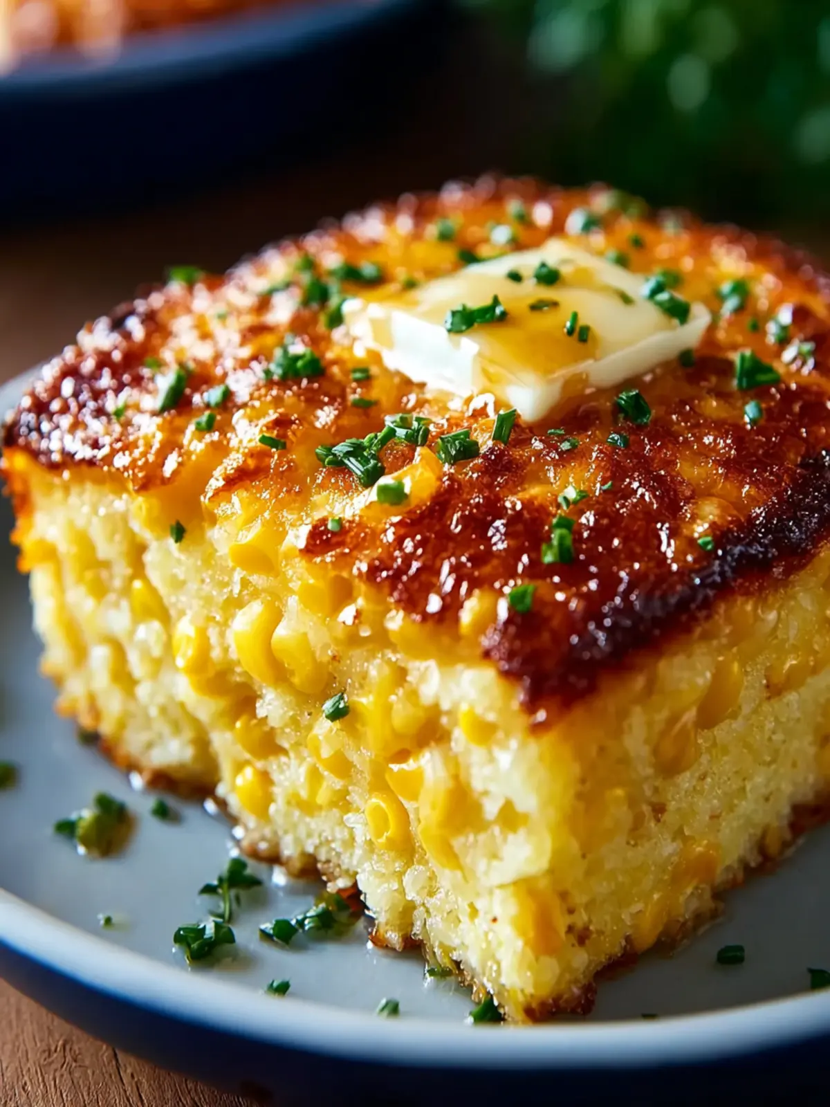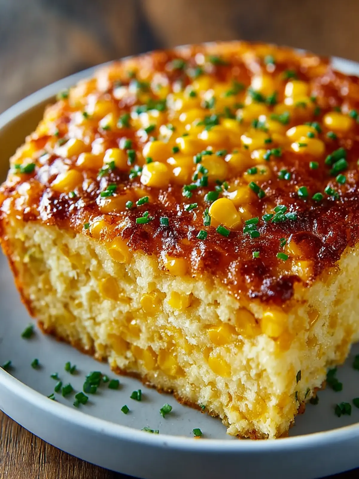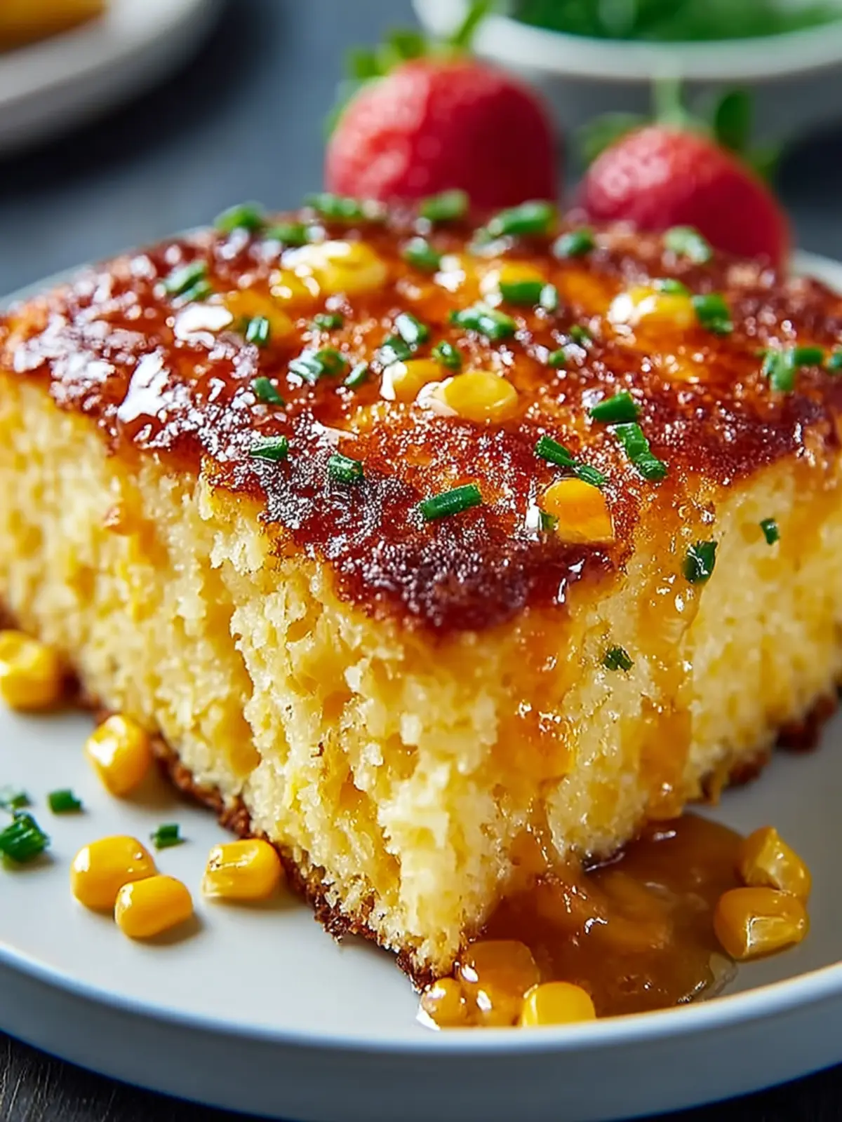 A delicious corn casserole made with a creamy base and topped with a sweet glaze.