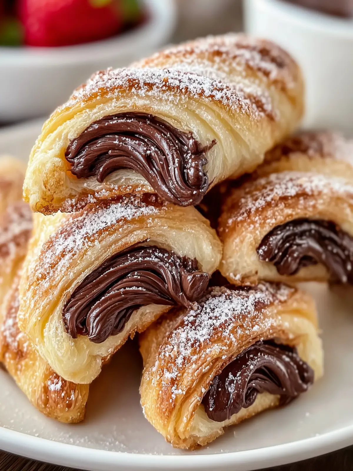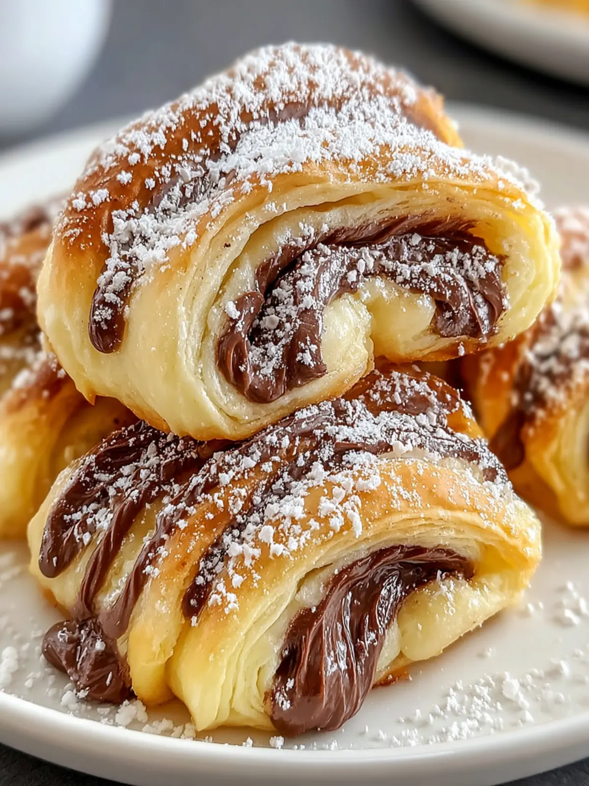 Coffee or Tea: Pair these pastries with a warm cup of coffee or your favorite herbal tea. The slight bitterness of the coffee complements the sweetness of the Nutella perfectly.
