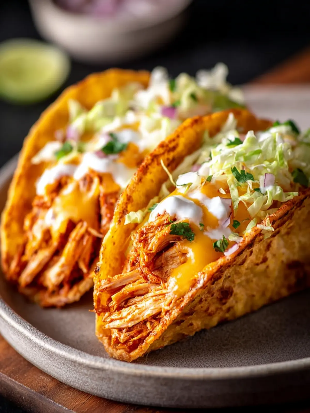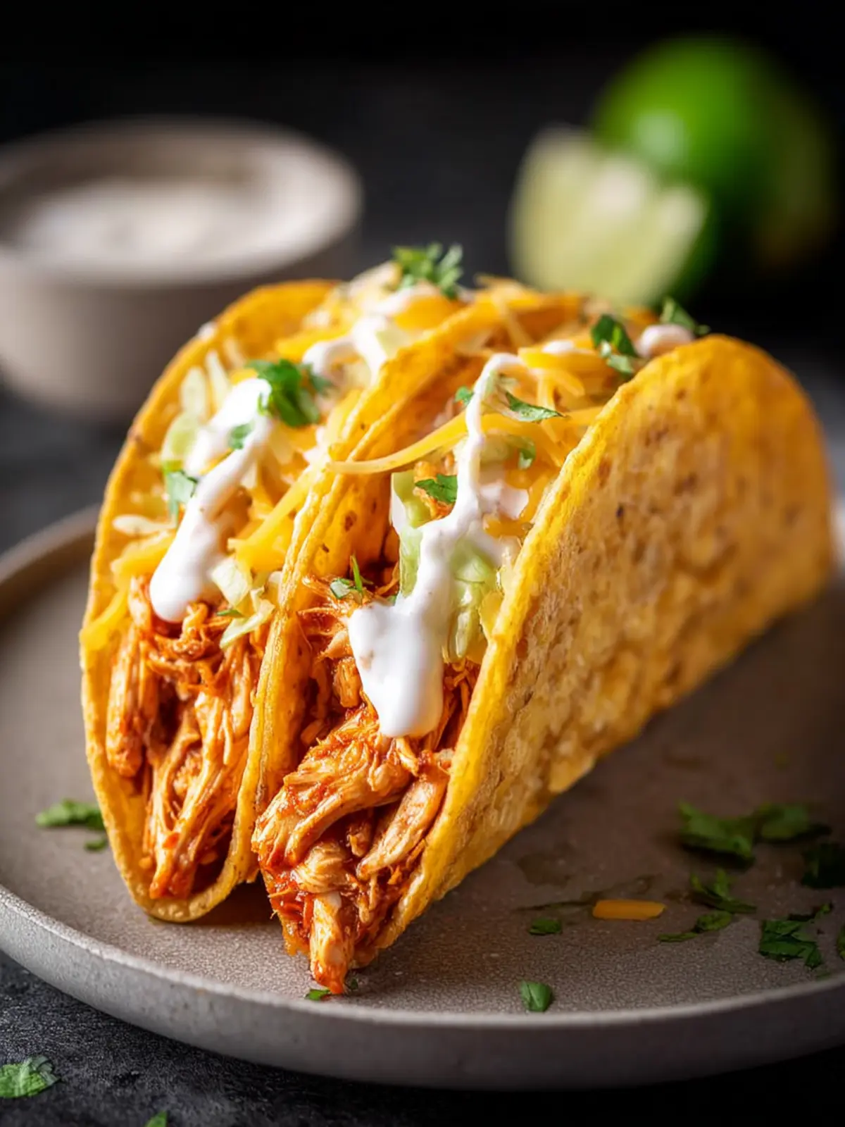 To keep your tacos crispy, avoid overfilling them. A tablespoon of filling per tortilla is usually the sweet spot. If they get soggy, lightly toast the tortillas before adding chicken.
