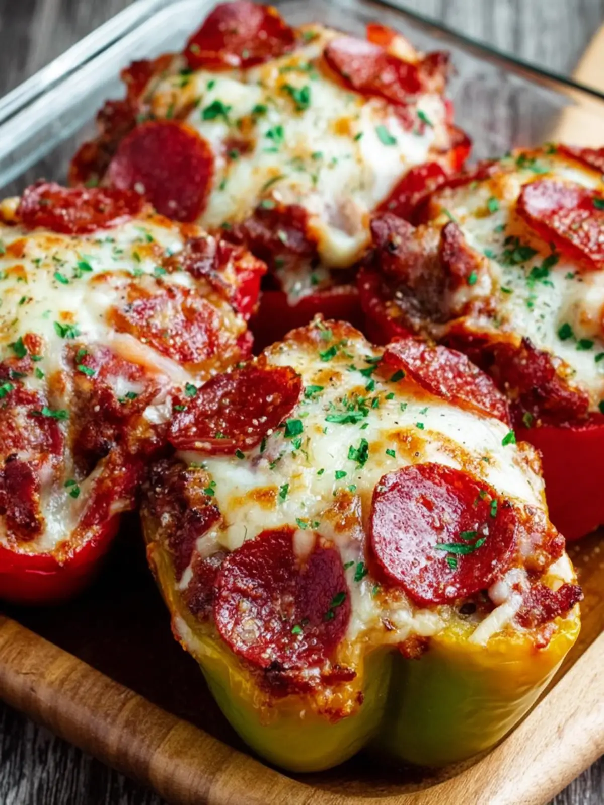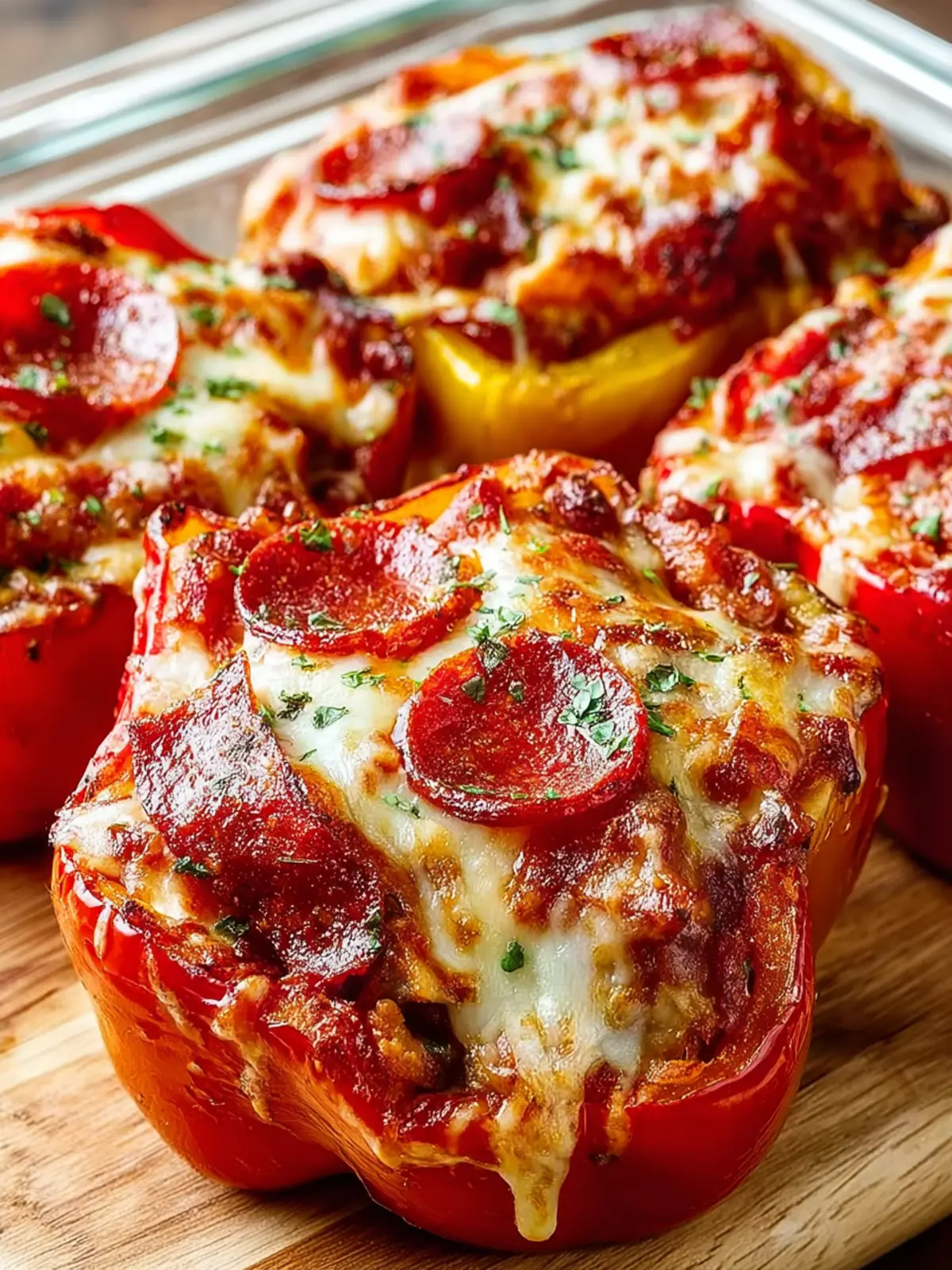 Delicious pizza-inspired stuffed peppers filled with Italian sausage, cheese, and pepperoni.