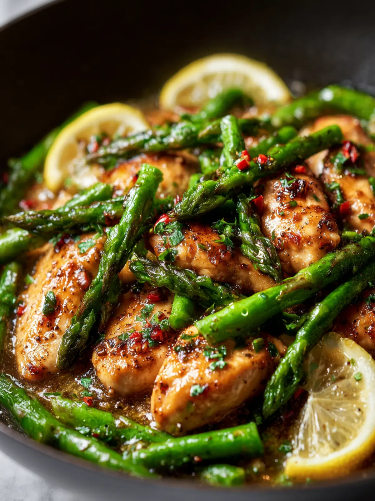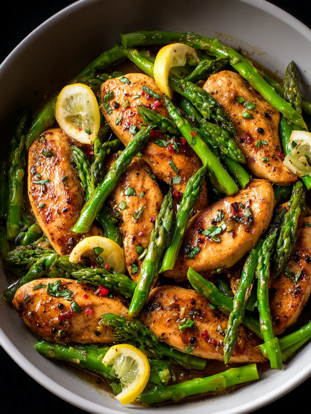 Wholesome Ingredients: Each ingredient is chosen for its freshness and flavor. The lean chicken breast offers protein, while the asparagus brings crunchy texture and vibrant color, making for a visually appealing meal.