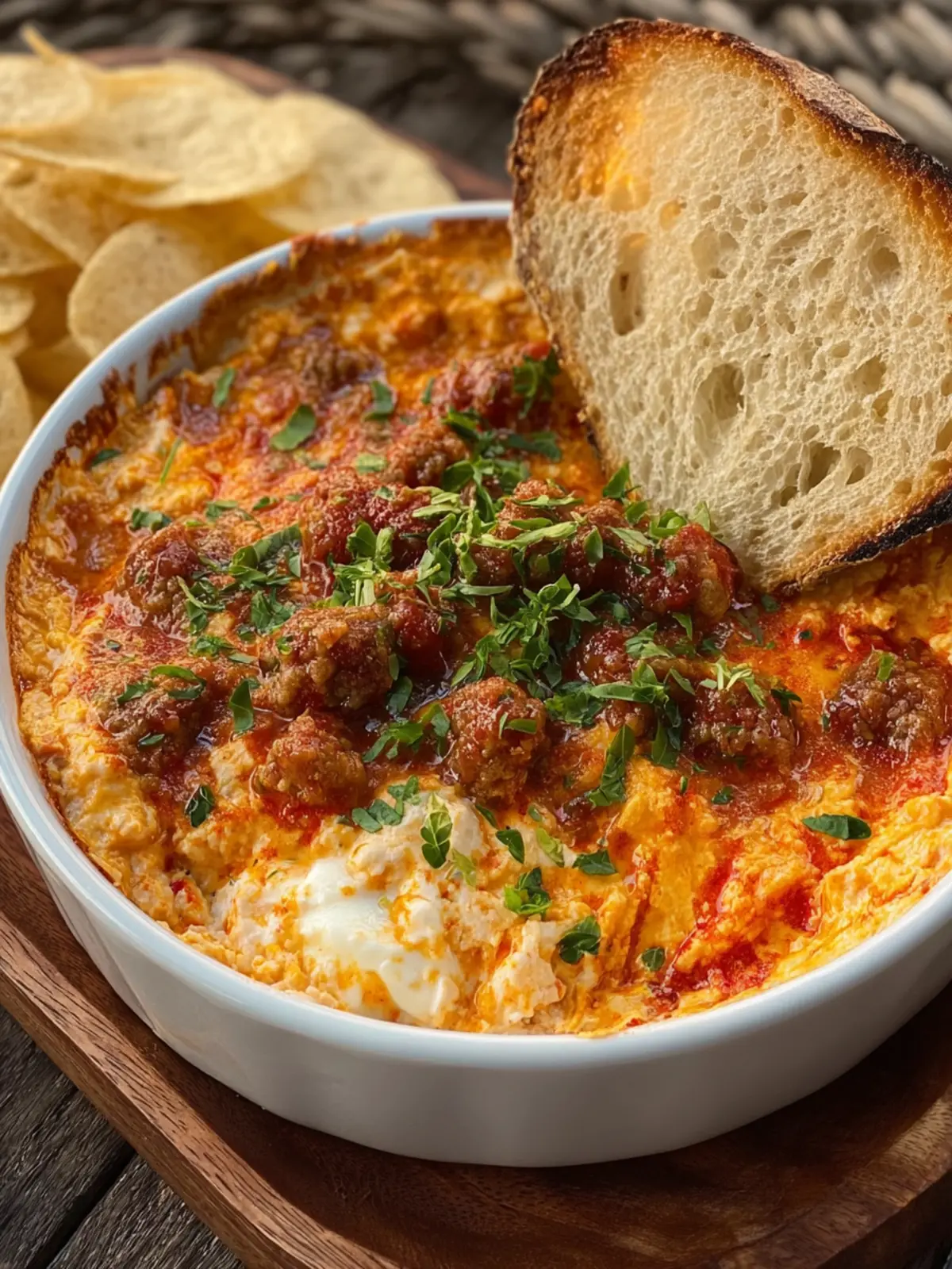 Why not elevate your Sunday Funday Dip by incorporating it into a charcuterie board? Place the dip in the center, surrounded by an assortment of cheeses, cured meats, olives, and fruit for a visually appealing spread. This not only enhances the taste experience but also creates a beautiful centerpiece for your table.