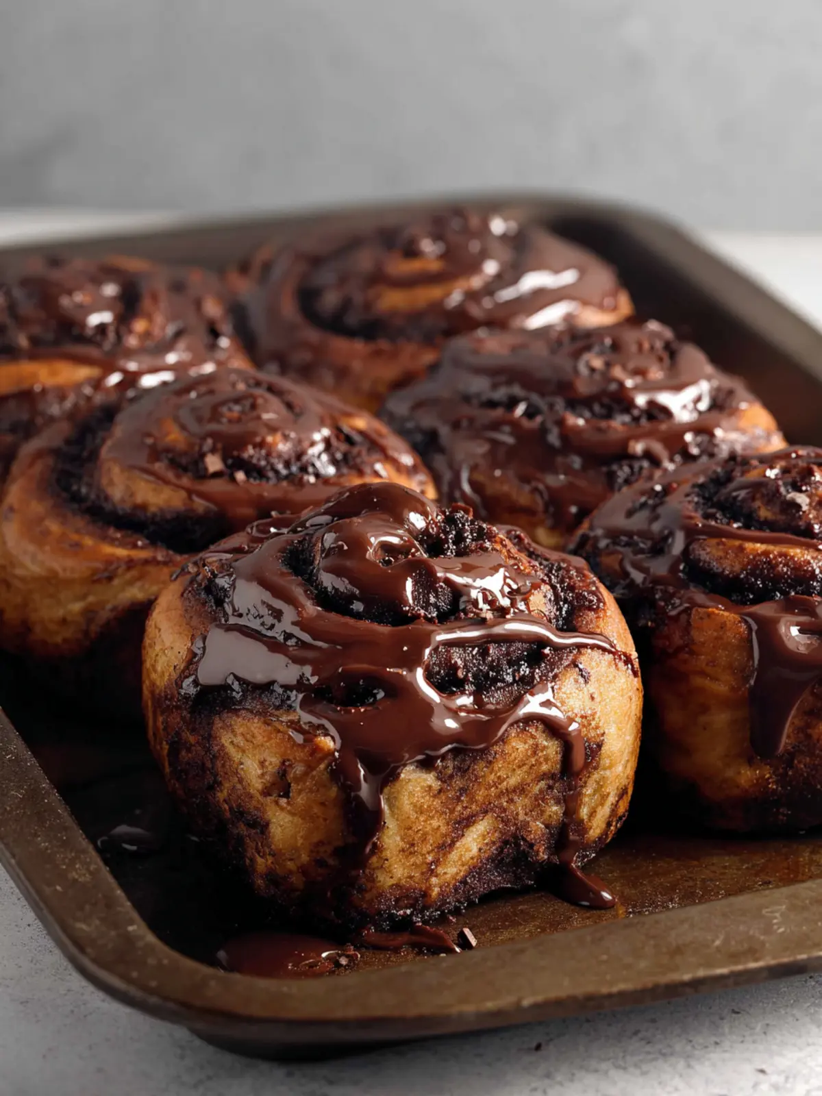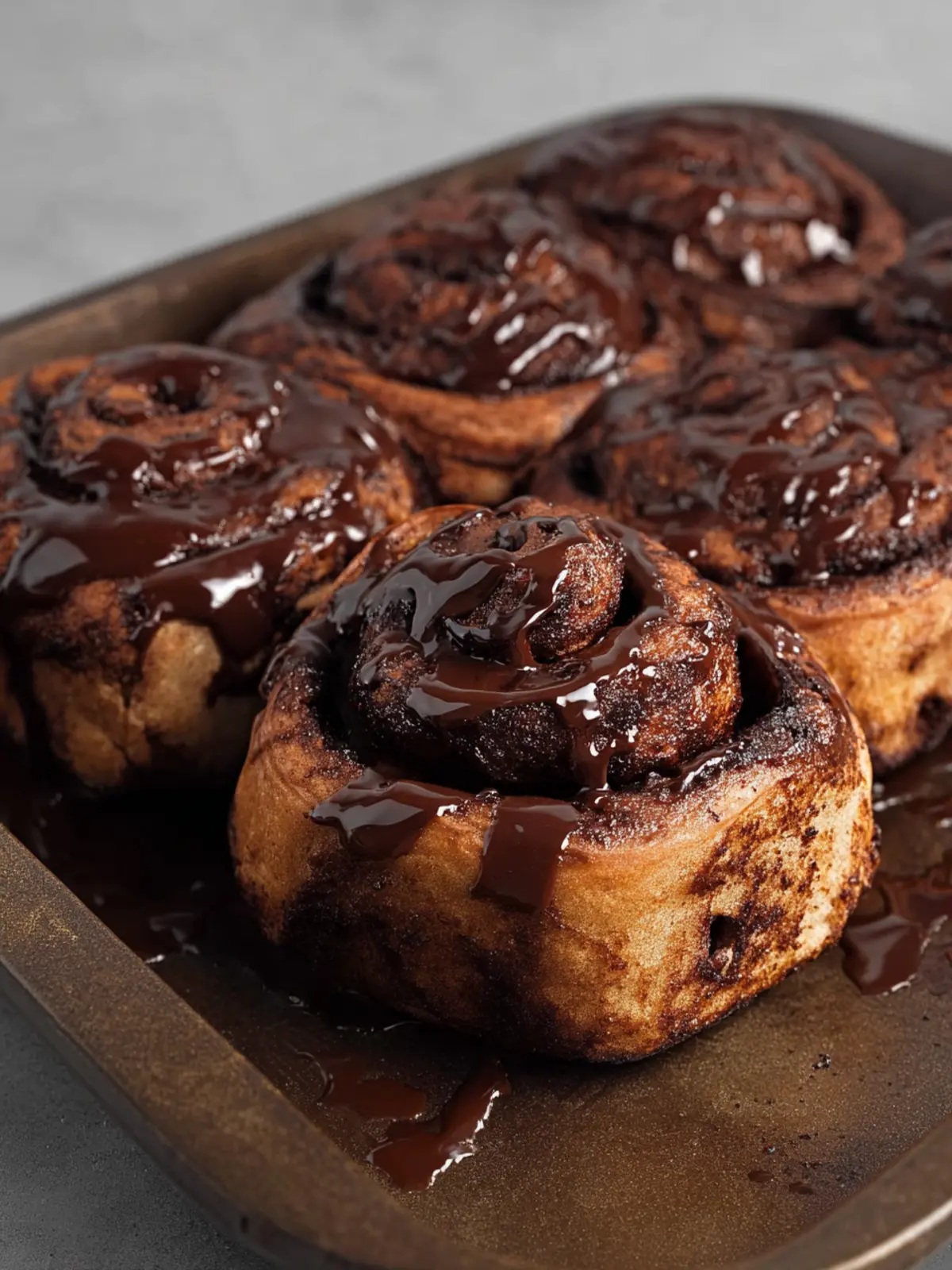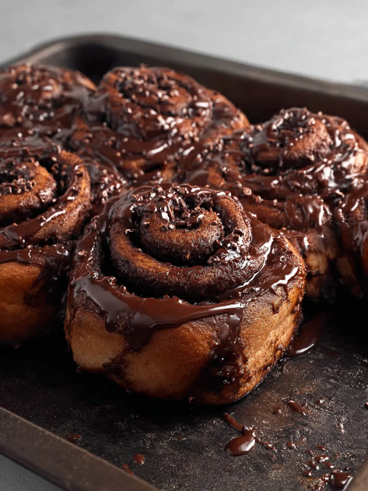 Deliciously soft and gooey chocolate cinnamon rolls topped with a smooth cocoa glaze, perfect for breakfast or a sweet treat.